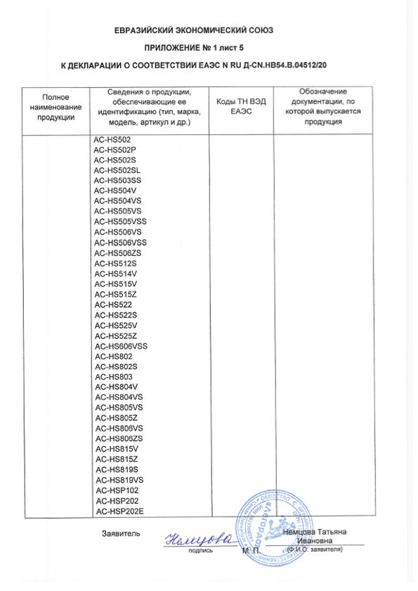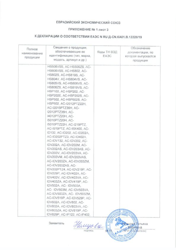 Коммутаторы и IP аксессуары Amatek. Декларация соответствия Таможенного союза (EAC) (2022-2027) v.3
