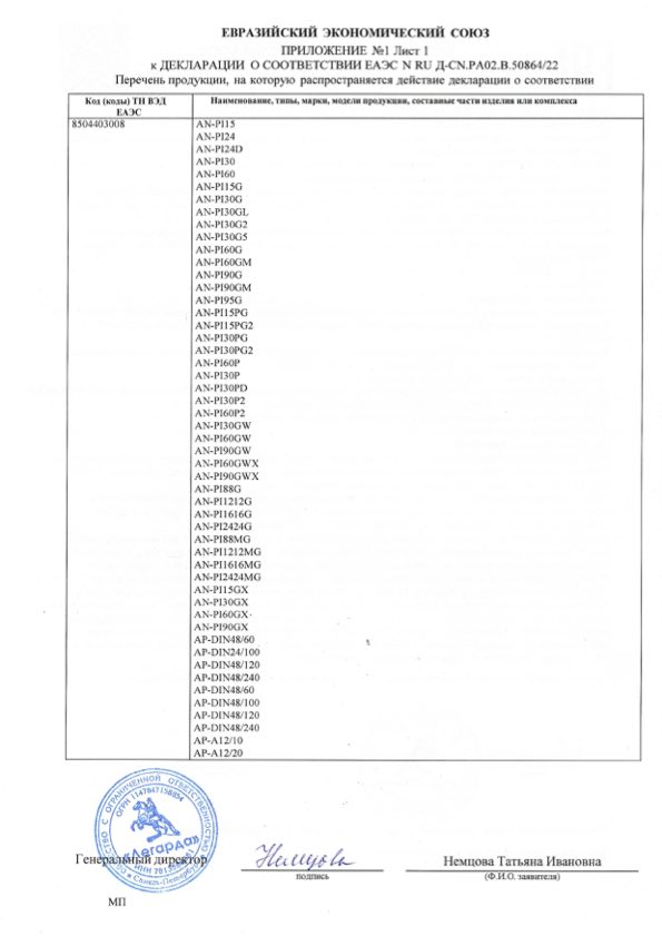 Инжекторы PoE Amatek. Декларация соответствия Таможенного союза (EAC) (2022-2027).