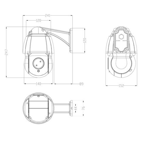 Хранение FTP, Local, NVR, Стандарт ONVIF 2.4. Условия эксплуатации -40...+60°C, Корпус металл/пластик Ø136 x 247 мм , IP66, Питание: адаптер DC12В±5% 3A (в комплекте) / PoE (IEEE 802.3at), потребление до 15Вт, грозозащита 6000В, Мобильное приложение IVS365.