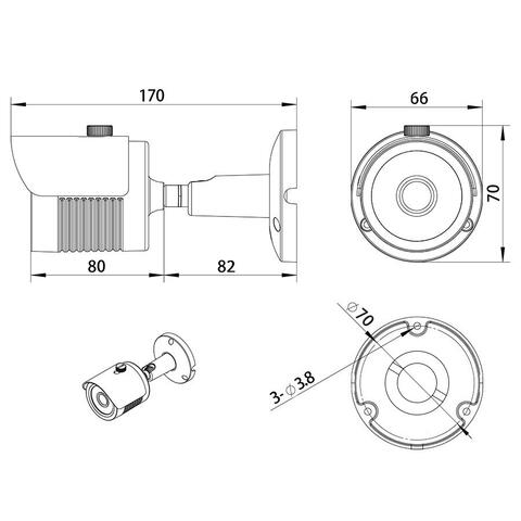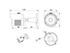 1/2.8" SC5239S CMOS сенсор, GK7605V100, H.265+/H265/H.264. Объектив 2,8мм. Разрешение 5Мп (2880×1616) 20к/с, 3Мп (2560×1440) 25к/с, 2Мп (1920×1080) 25к/с. Аудиовход, G.711A, выход питания микрофона 12В/0,1А. Дальность ИК подсветки 20м. ONVIF 2.4, DWDR, 2D/3DNR шумоподавление (регулировка День/Ночь), BLC, Defog («антитуман»), 4 приватные зоны. Видеоаналитика: обнаружение движения человека, обнаружение пересечения периметра, маскирование камеры, детектор потери сигнала, обнаружение лиц. Питание PoE (IEEE 802.3af) / DC12В, 500мA. 3D кронштейн, корпус металл, IP66. Рабочая температура: -40...+60°C. Размеры 157×70×66мм, вес 450 г. Бесплатный облачный сервис XMEye.