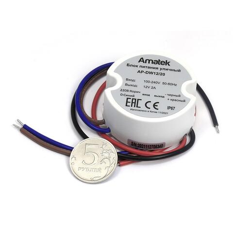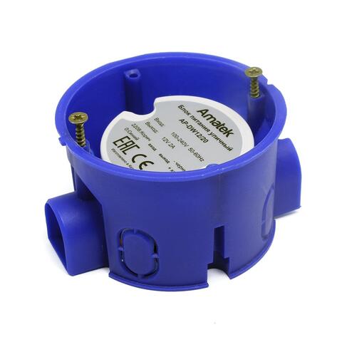 Компактный размер (Ø50x22 мм) и защищенное от пыли и влаги исполнение корпуса (IP67) позволяет установить блок питания в электротехнические соединительные коробки, кабельные каналы, кожух видеокамеры и т.п..