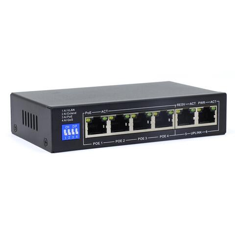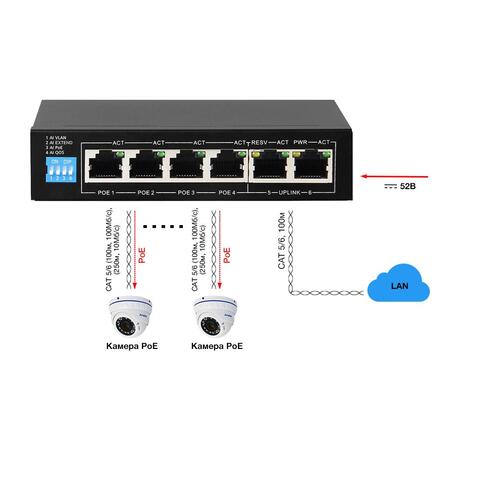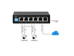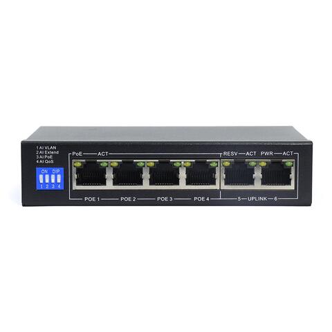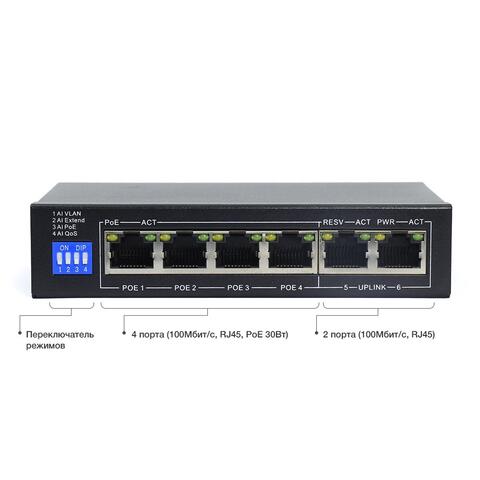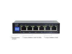 Коммутатор на 6 портов (4 PoE+ порта + 2 порта Uplink):