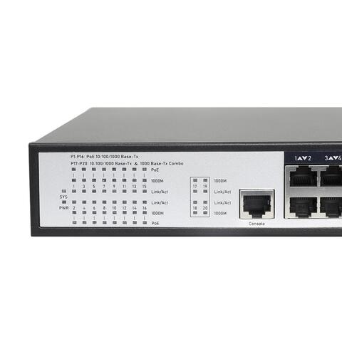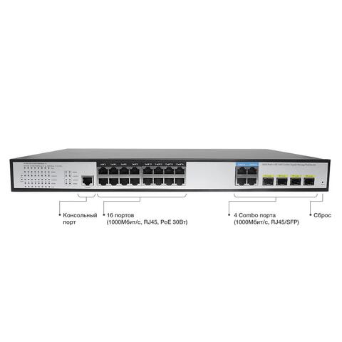 Управляемый L2+ коммутатор на 20 GE портов (16 PoE+ портов + 4 Combo Uplink порта):