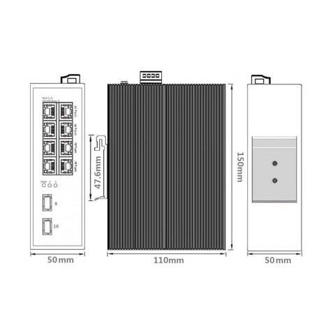 Промышленный коммутатор на 10 портов (8 PoE+ портов + 2 слота SFP):