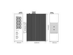 Поддержка PoE (IEEE 802.3af/at). Суммарная мощность PoE портов до 240Вт. Таблица MAC адресов 4096 (4K), скорость коммутационной матрицы 20 Гбит/с. MTBF 100 000 часов. Функция PoE Watchdog? Грозозащита 6000В (ESD), от контактного разряда 8кВ, воздушного разряда 15кВ. Рабочая температура -40…+75°С, влажность: 5%~95%, без конденсата. 2 входа питания DC 44-56В (c PoE) / DC 12В (без PoE) Защита от переполюсовки питания. Корпус металлический с креплением на DIN-рейку 35мм, размеры 150x110x50мм, класс защиты IP40. Вес 0,9кг.
