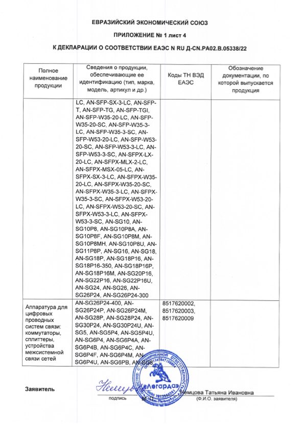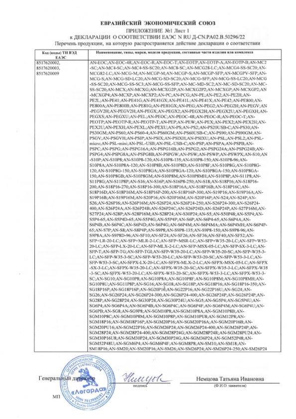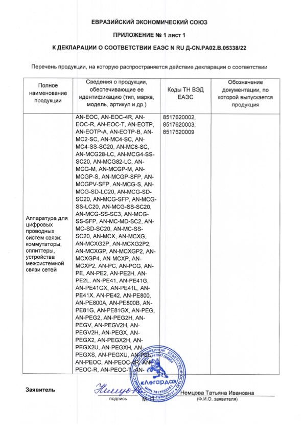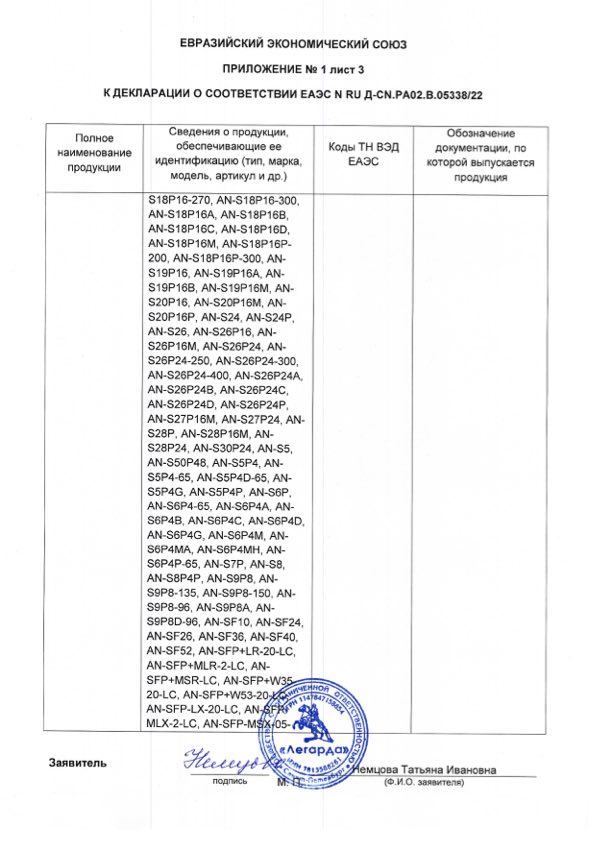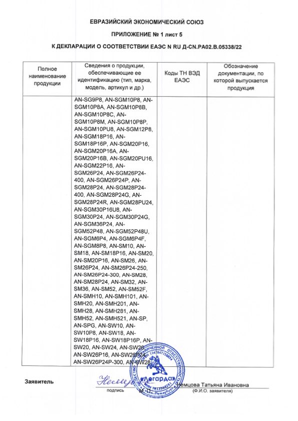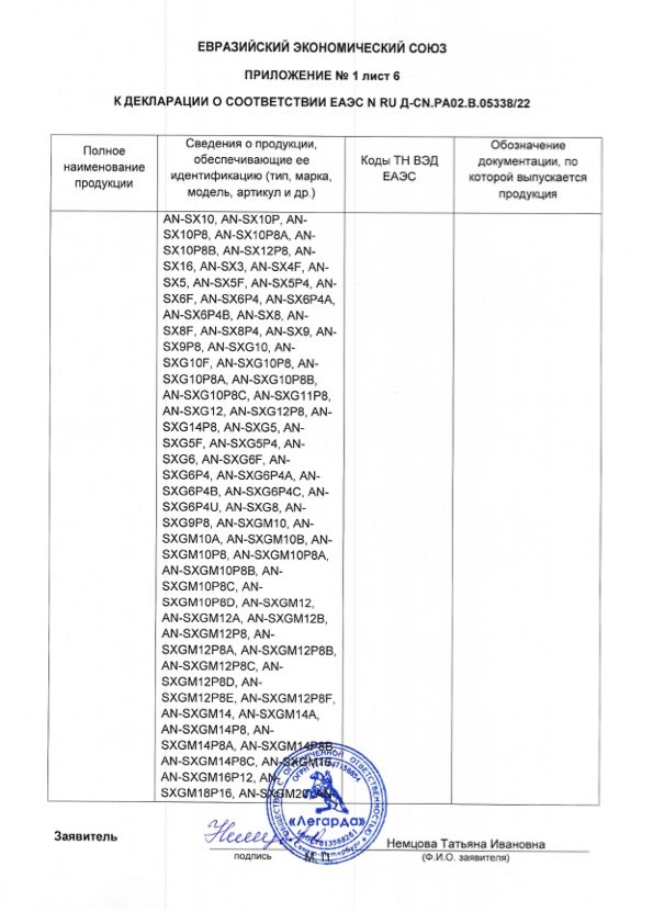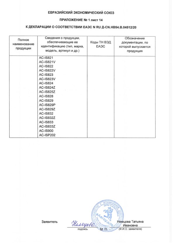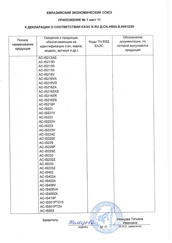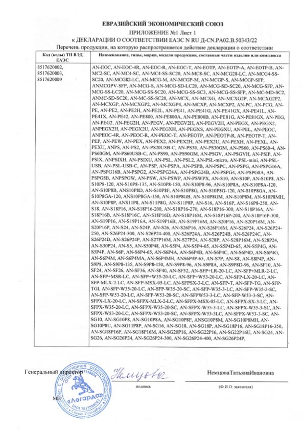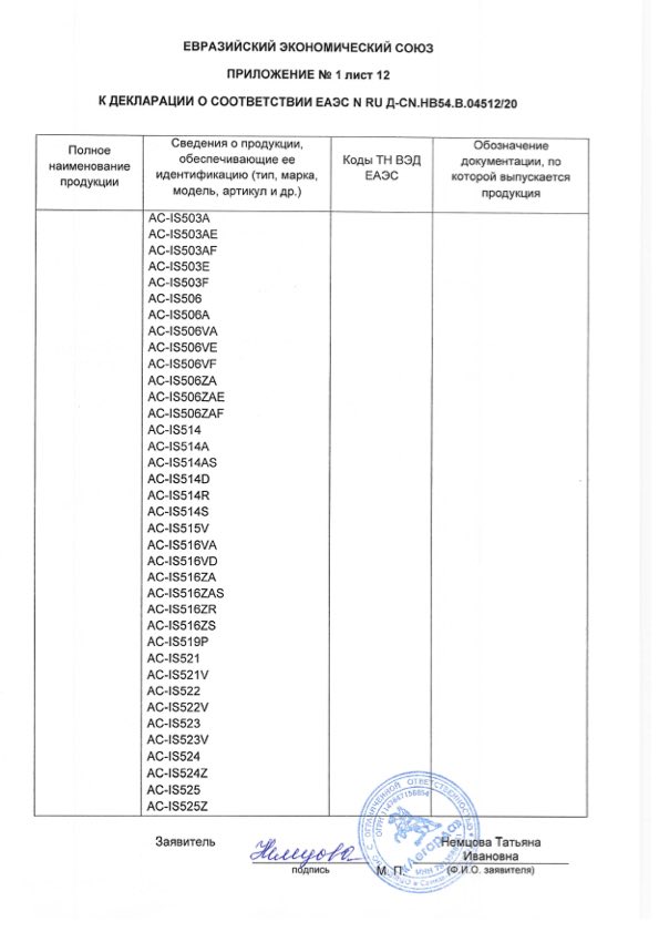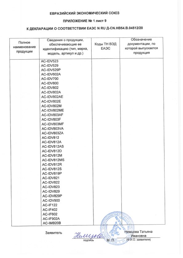 Коммутаторы и IP аксессуары Amatek. Декларация соответствия Таможенного союза (EAC) (2022-2027) v.3